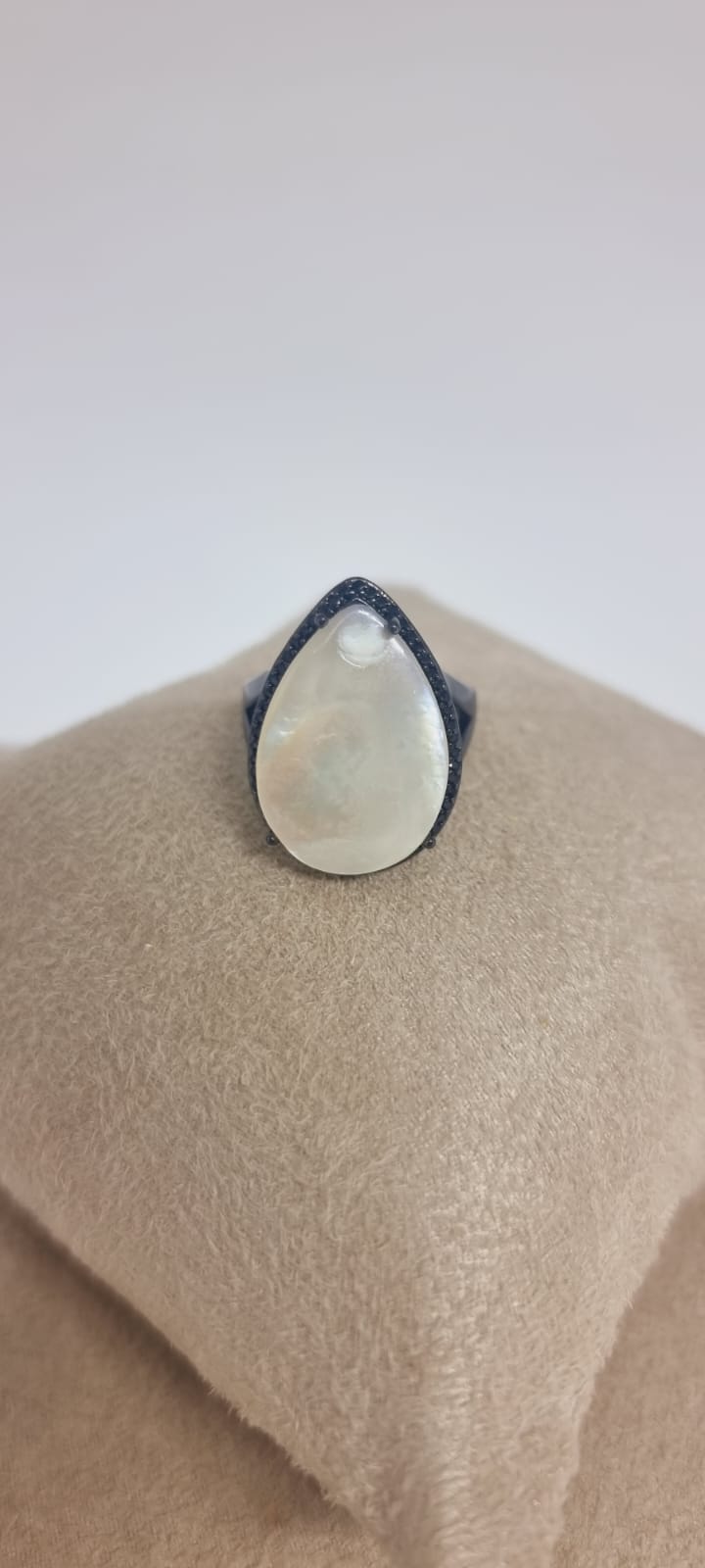 Anel Pérola branca em banho Ródio negro, tamanho 18.